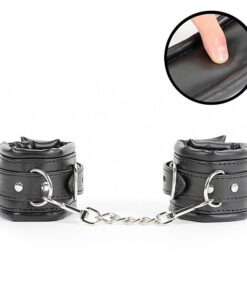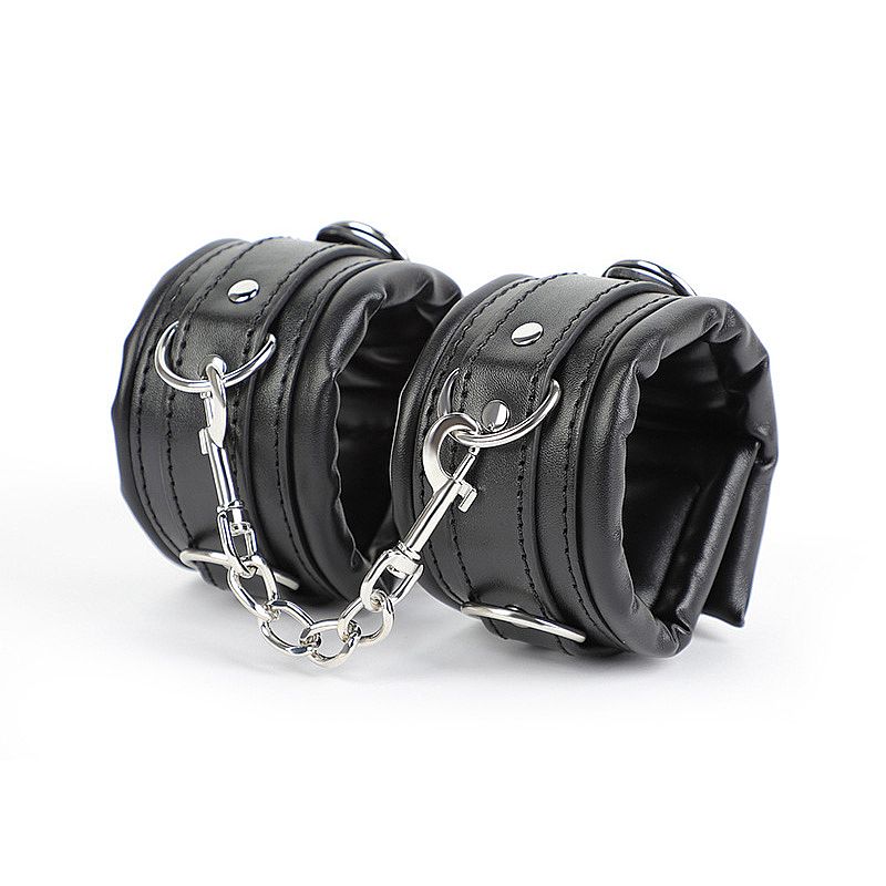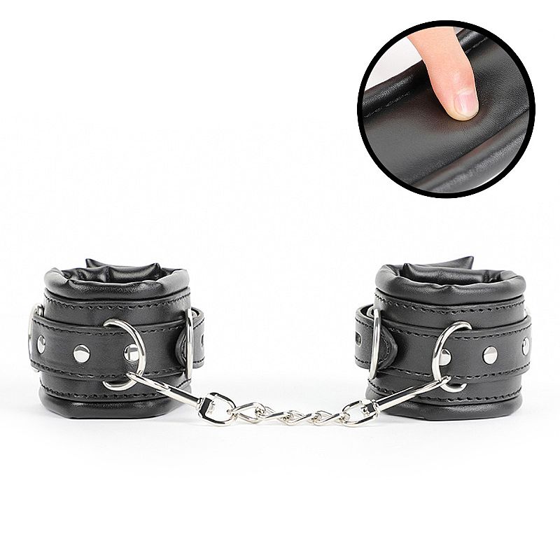 Realize diversas fantasias com este luxuoso par de algemas produzidas em PU reforçado com fivelas ajustáveis e esponja interna.