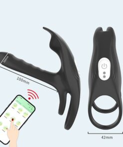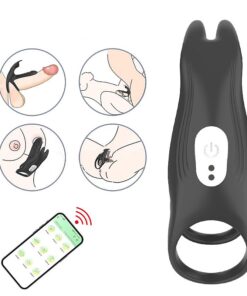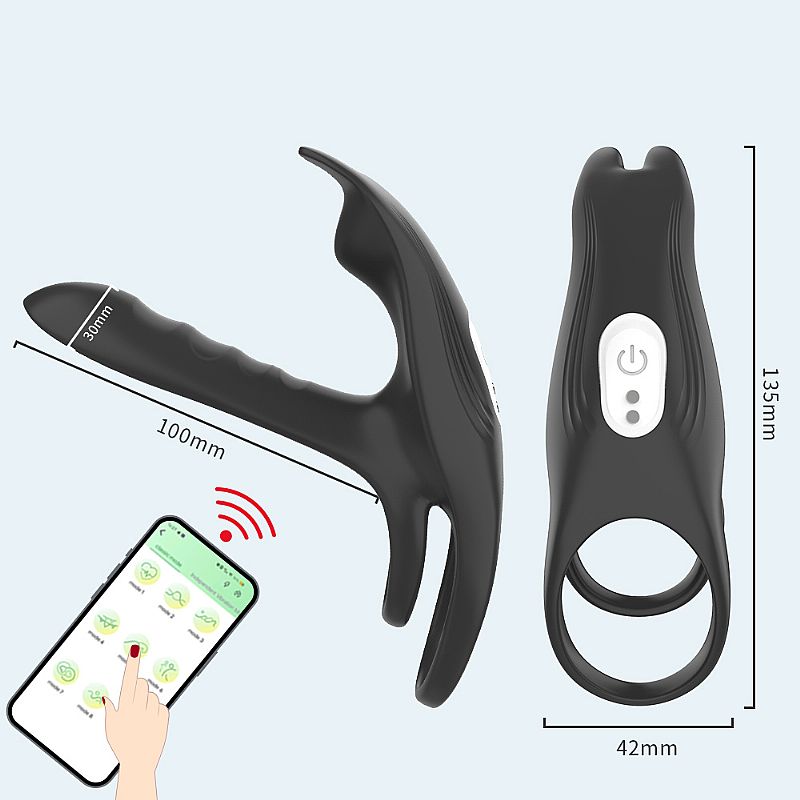 Vibrador peniano com anel duplo, 12 modos de vibração via Bluetooth, o produto é macio ao toque ergonômico,