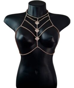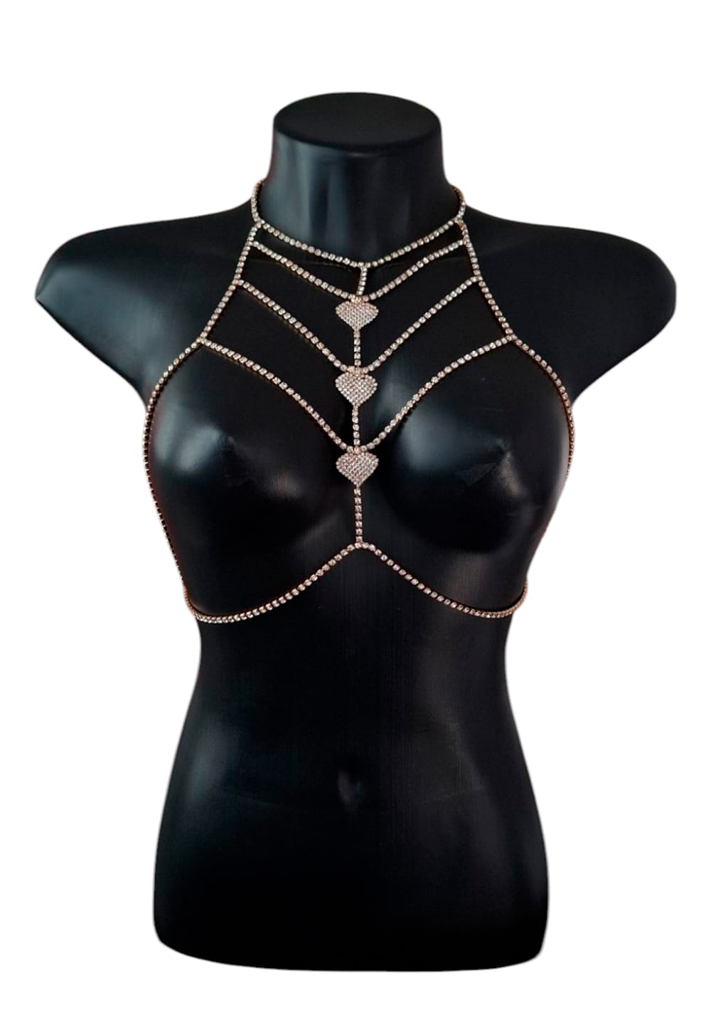 Body Chain com Strass e detalhes de Coracoes – Top de Strass – Joia de Corpo Tamanho:Unico – YSBN136