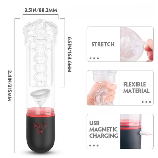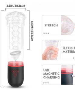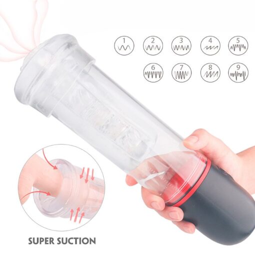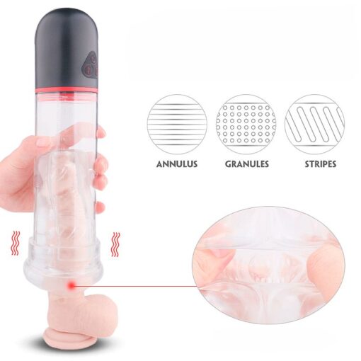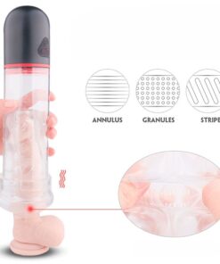 Bomba Peniana – possui anel em silicone e formato de vagina. 9 modos de vibração e 4 modos de sucção