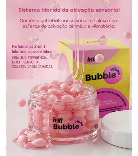 Bubble Vibes é um produto inovador que combina um gel deslizante com microesferas sensoriais, criando uma experiência 3 em 1: deslize, vibração e aquecimento.
