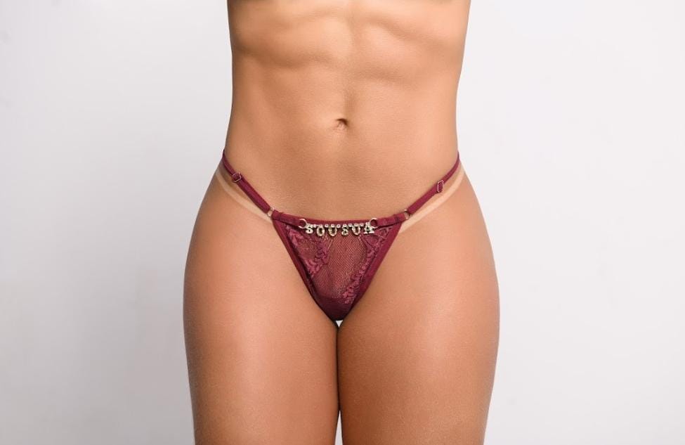 Calcinha String de Renda com Frase frontal Tamanho:Unico; Cor:Vermelho / Rubi – Y5121