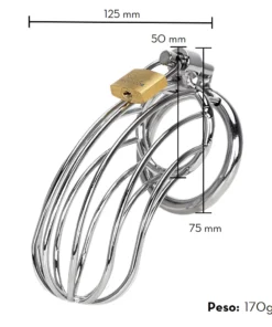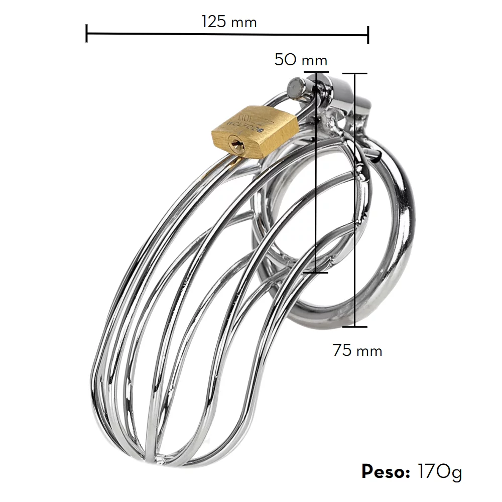 É um cinto de castidade masculino vazado, com argola para escroto, detalhes de grade e todo confeccionado em aço inoxidável de alta qualidade. Acompanha um cadeado metálico e três chaves para prender o anel no cinto, permitindo encaixar o escroto. Mantenha seu parceiro dominado com este resistente cinto de castidade!