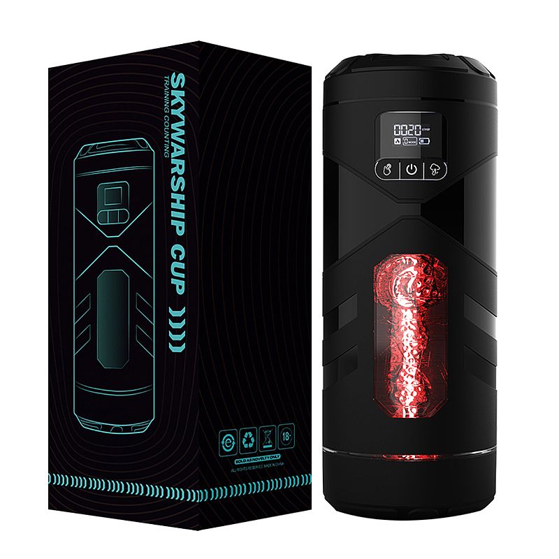Masturbador masculino com formato de lanterna com tela de led – possui 3 modos de sucção e 3 modos de vibração