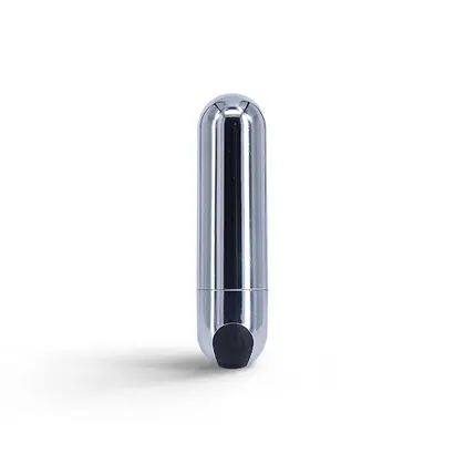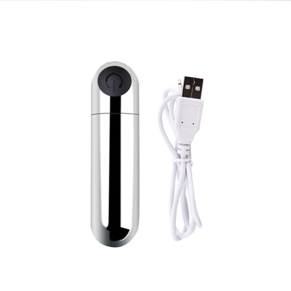 Cápsula vibratória metalizada com forma arredondada recarregável USB.