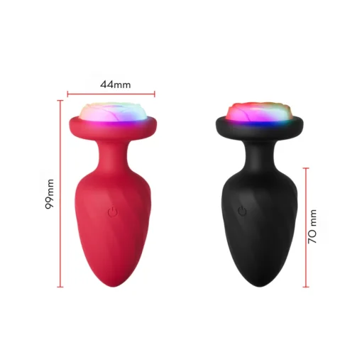 Plug anal vibratório em silicone com base de led com formato de flor e controle remoto. Possui toque suave e aveludado.