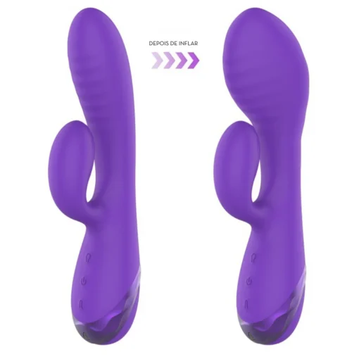 Vibrador com estimulador clitoriano integrado e função inflável, desenvolvido em silicone de alta qualidade, seguro para o corpo. Oferece múltiplos modos de vibração, design ergonômico e discreto, além de ser resistente à água para maior versatilidade. Ideal para clientes que buscam inovação e personalização em produtos íntimos.