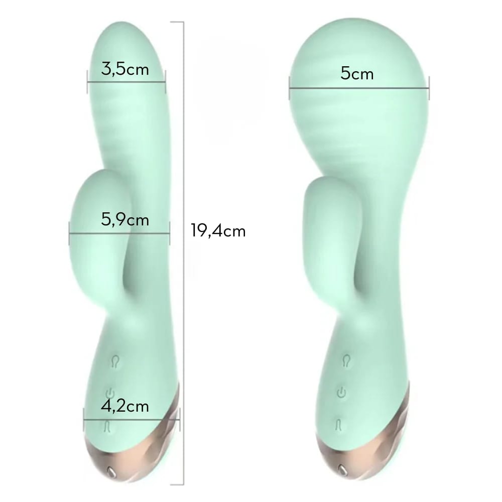 Uso: Posicione o estimulador clitoriano no local desejado e insira suavemente o vibrador, ajustando a intensidade e o nível de expansão conforme o conforto.