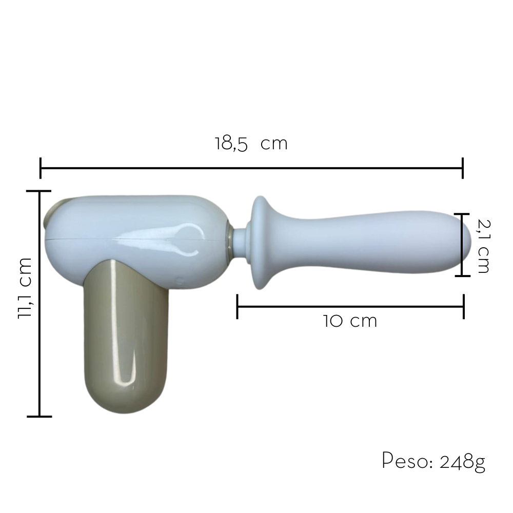 Higienize o massageador e as pontas antes do uso com água morna e sabão neutro. Escolha a ponta desejada e encaixe no aparelho. Ligue o massageador e selecione o modo de frequência que preferir. Utilize o massageador na área desejada, aplicando a pressão conforme sua necessidade. Após o uso, desligue o aparelho, retire a ponta utilizada, lave-a com sabão neutro e seque com papel toalha ou ao ar livre. Guarde o produto em local seco e protegido da luz direta.