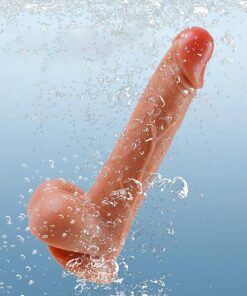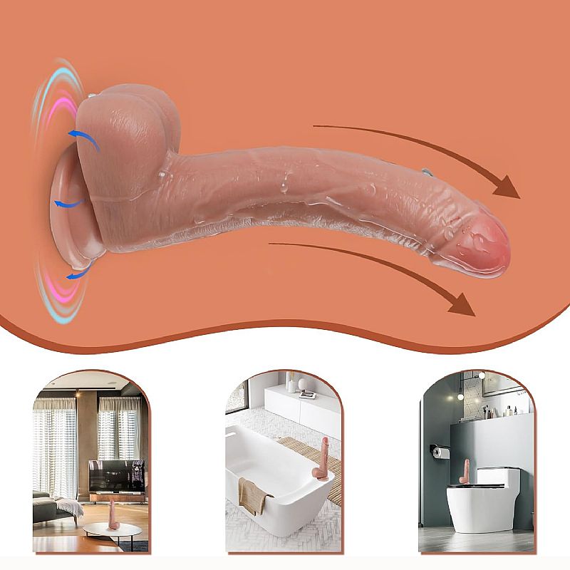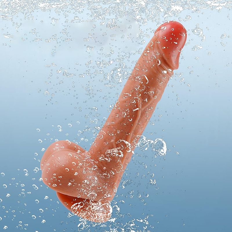 Prótese realística em formato de pênis, confeccionado em Abs, possui glande definida,