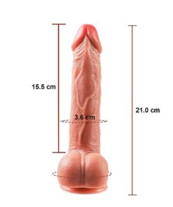 21.0 cm de comprimento, sendo 15.5 cm penetráveis, 3.6 cm de espessura (medidas aproximadas).