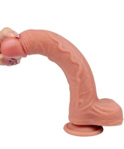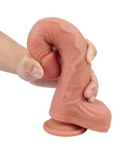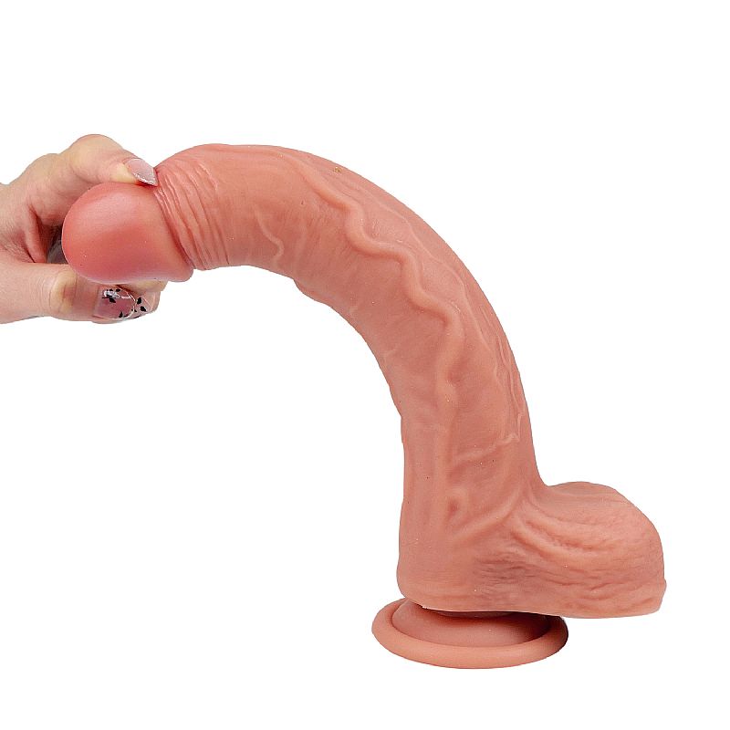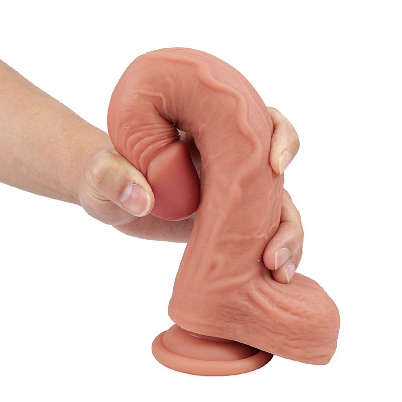 Prótese realística em formato de pênis, confeccionado em Abs, possui glande definida,